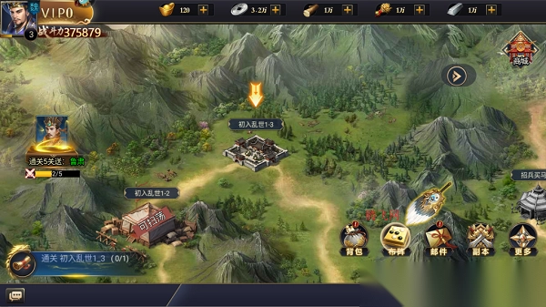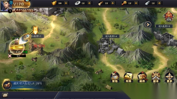 1、打开博游萌闯三国手游,参照图示点击关卡。
