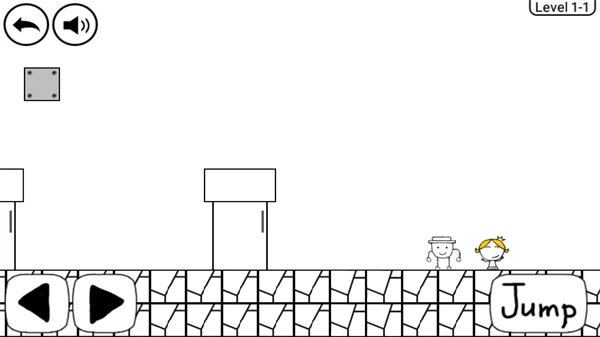 )然后一路跳到女神身边即可,因为地上的地板会凹陷下去,所以同样不要进行滞留。接着1-1关就通关了。