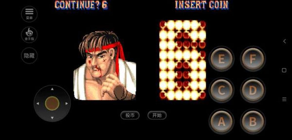 1. 开启街头霸王2汉化版手机版本,首先轻点“投币”,接着轻点“开始”。