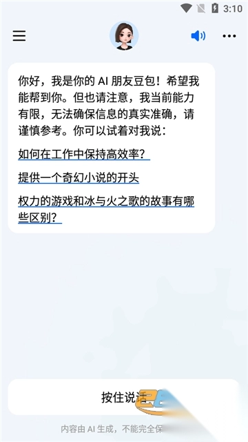 字节跳动旗下的抖音推出了专属AI模型聊天工具——豆包App。这款软件功能丰富,不仅能进行AI聊天,还配备了英语学习助手、超爱聊天的小宁以及全能写作助手。软件在语音总结与归纳方面功能十分完善,只是在做数学题上稍显逊色。整体而言,它是一款相当不错且成熟的工具。