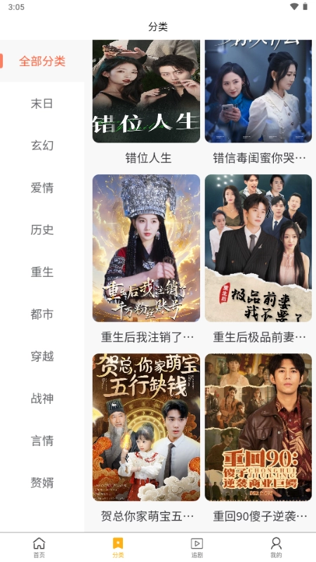 2、点击分类,你可根据自身喜好自由选择分类及短剧。