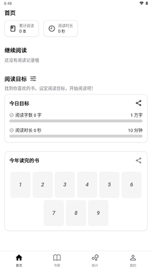 2. 系统会对用户的累计阅读量和时长进行实时统计,并在首页展示已读完的书籍,以此激励用户持续保持阅读的良好习惯。