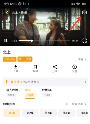 2、接着任意播放一部剧集内容,找到右上角的“tv”标志,如图所示。