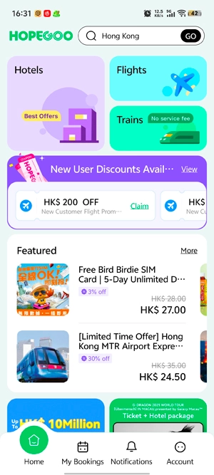 HopeGoo正版助您轻松以超值优惠预订酒店、机票与火车票。国际航班价格超低,预订便捷;全球酒店丰富可选,预订轻松;内地火车票也能轻松预订。解锁最新优惠与会员专属福利,让您的每段旅程都能省到底!有需要的用户快来本站体验吧。
