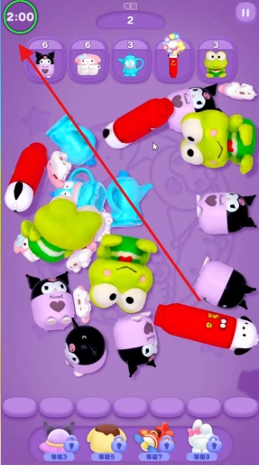 在关卡倒计时结束前,从杂乱堆放的周边商品堆里快速找出三个一模一样的商品,点击它们完成配对。