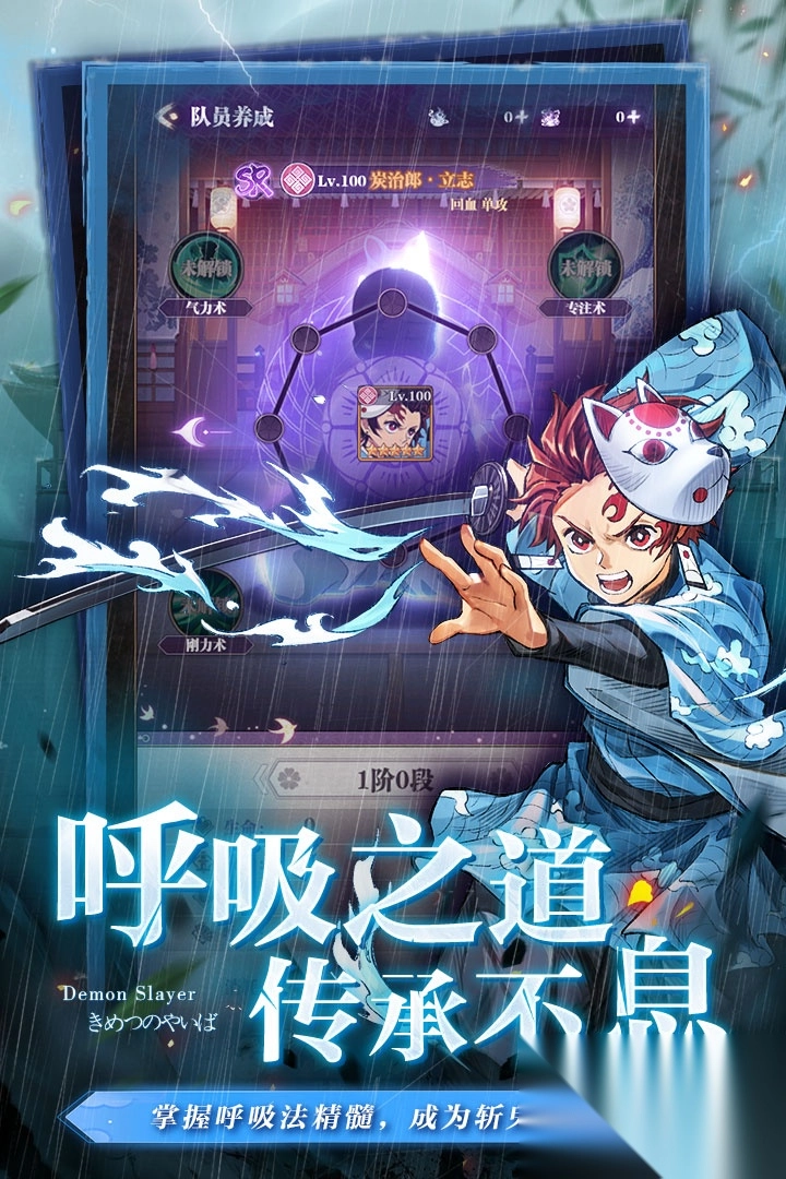 3、打造独特的呼吸法连携机制,不同流派的剑士组合能够触发特殊合体技能,完美还原动漫里的华丽剑技。