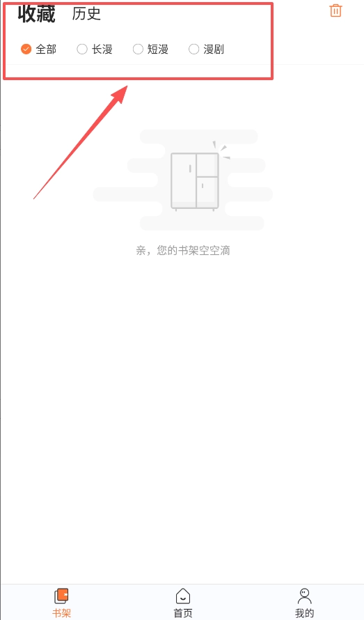 4、您可以对自己的阅读内容进行个性化管理,在这里能查看收藏记录和阅读历史,还能把喜欢的作品添加到书架中。