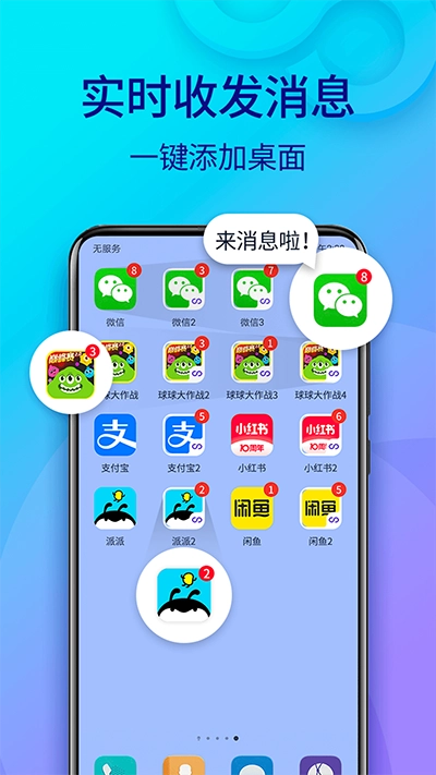 这款应用能为用户提供应用多开功能,让用户在同一设备上同时登录多个社交账号。安装后,用户可同时使用多个微信、QQ等应用,轻松区分生活与工作场景,自由管理各账号消息,操作更高效便捷。