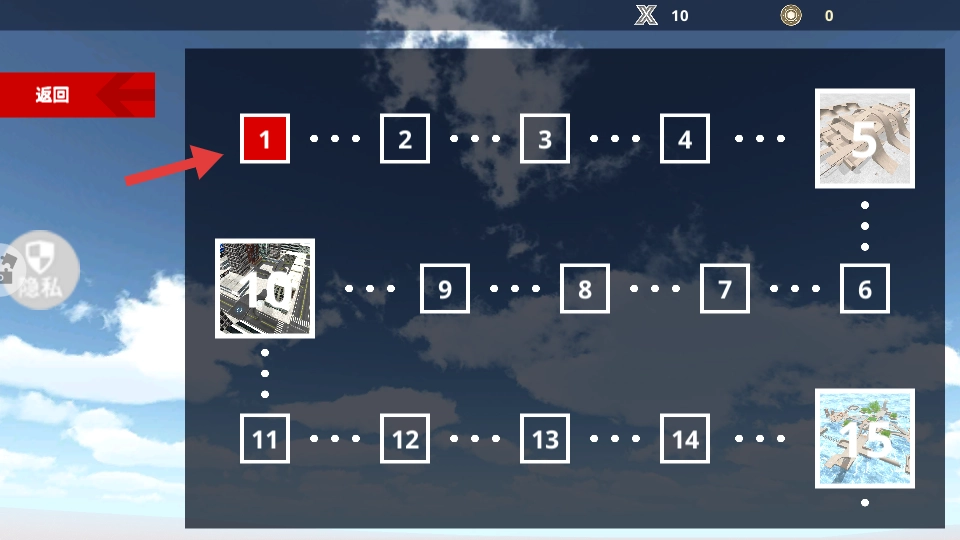 点击【任务公园】进入关卡选择界面,建议从编号较小的关卡开始挑战,比如先尝试【1】号关卡,这样能逐步熟悉游戏的操作方式并掌握相关技巧。