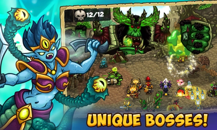 在塔防界面里,玩家能够利用资源购置塔防设施与战士,再把它们布置到恰当的位置上。