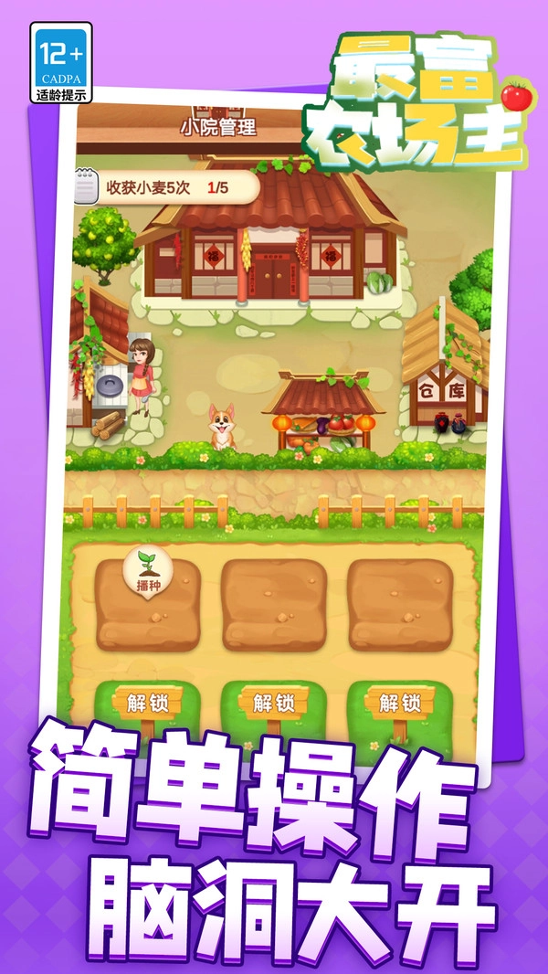 《最富农场主》安卓版是一款主打农场经营的模拟休闲游戏,玩家将以农场主的身份开启从无到有的田园创业之路。游戏内构建了完整的农业产业链,从田间播种、作物收获,到将农产品加工为各类美味商品进行售卖,每一个环节都由你亲自决策与操作。在悠闲自在的游戏氛围中,你可以逐步将一片荒芜的空地,精心打造成独属于自己的农业小天地。