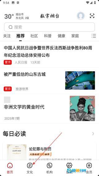 1、打开软件,点底部【文化】。