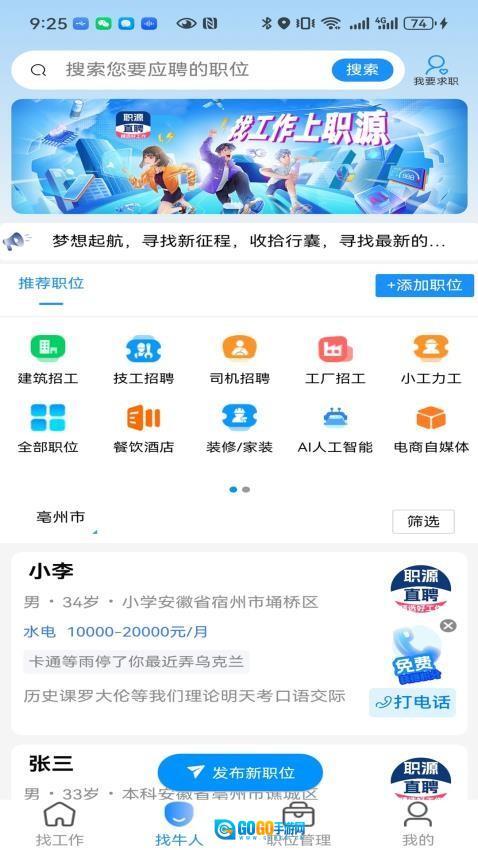 1、职位资源覆盖广:海量职位遍布全国多城市,涵盖各行各业,无论是基层岗位还是专业职位,都能找到匹配选择。