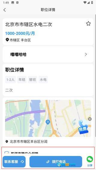 4、在职位详情页,可通过【联系客服】【拨打电话】沟通求职。