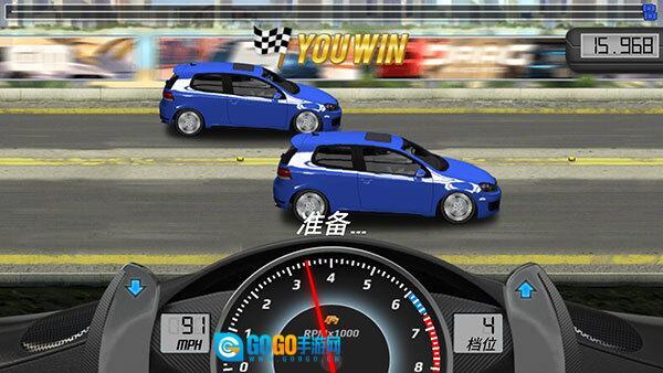 4、待下方仪表盘的指针接近绿色区域时升档,以获取加速效果;