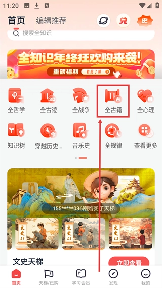 1、进入应用后,在首页找到【全古籍】功能入口并点击,可进入人类全部古籍的分类页面。