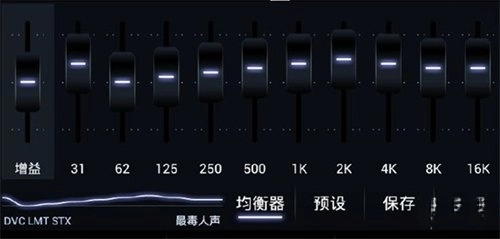 首先是增益,增益之后设有十个频段,按照从左到右的顺序,依次对应从低音到高音的音频范围。