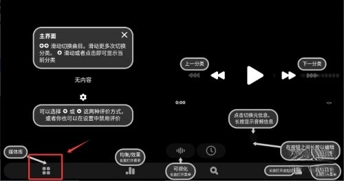 进入应用主界面后,点击左下角的媒体库图标,即可进入资源管理页面。