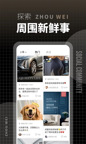 洲围是上海创成永迎信息科技有限公司开发的一款实用社交互动平台,在这里,你能随时了解周边发生的新鲜事,也可以分享自己的观点,和朋友们交流互动,享受聊天的乐趣!平台上还有不少知识博主分享生活中的实用小经验,你可以学习这些内容,让日常生活更有趣。如果你也想加入,就赶快试试吧!