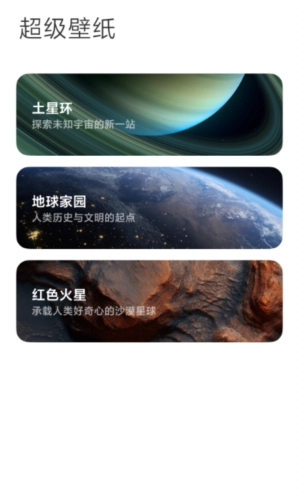1、土星超级壁纸包含数千张高清壁纸,主题覆盖范围广泛,用户能够依据个人喜好自由挑选。