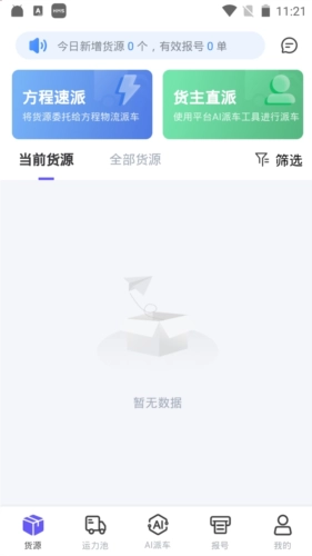 方程物流货主版是内蒙古大晔网络科技有限公司推出的一款专为货主打造的软件,集成了丰富功能,核心目标是解决货主派车困难、成本过高的问题,是一个专注于煤炭物流领域的车货匹配平台。该平台拥有百万级运力资源,结合AI叫车技术,能帮助货主快速完成派车流程,有效提升叫车效率、降低叫车成本,有需求的用户可以体验使用!