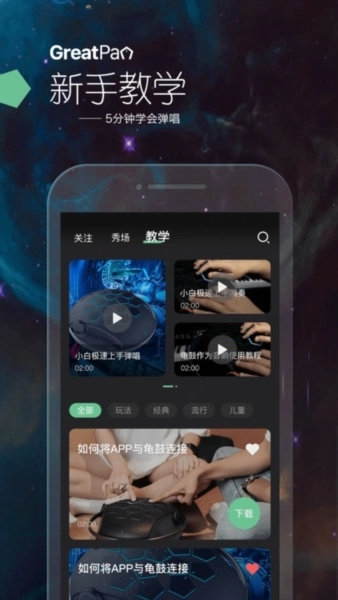 GreatPan探索版是一款出色的音乐制作软件,提供海量丰富的曲谱资源,无论是音乐新手还是进阶玩家,都能借助它快速掌握弹唱技巧,激发创作灵感,满足不同用户的个性化需求。而GreatPan龟鼓更是集学习、互动、分享、创作于一体,覆盖弹唱、听歌、演奏、编曲及分享等多元场景,专为音乐爱好者量身打造,操作简单易上手,轻松又酷炫,让你秒变音乐达人,快来体验吧!