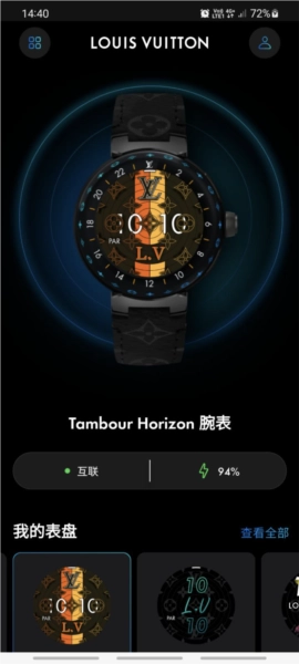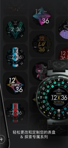-定制表盘:您能够便捷地更换并个性化您的TambourHorizonLightUp智能腕表表盘。不管是挑选鲜明的渐变色、品牌特有的标志性图案,还是依据LouisVuittonMyTravel的个性化选项,都可以打造出契合您风格的专属腕表。