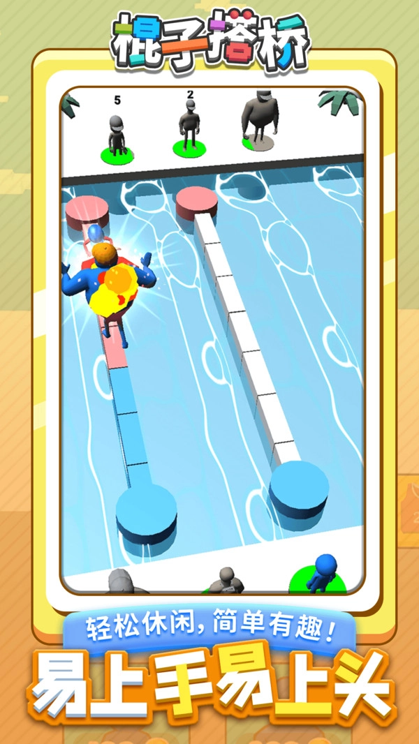 在水面上展开趣味的闯关挑战,利用棍子来搭建桥帮助你快速的闯关,卡通3D风格为你带来更多的趣味挑战,丰富的关卡为你带来更多挑战,完成任务来赢得奖励,精彩的闯关感受休闲的乐趣挑战,小心的保持平衡来躲避危险,快速灵活的完成更多的任务赢得胜利,难度逐渐的增加快来挑战试试吧。