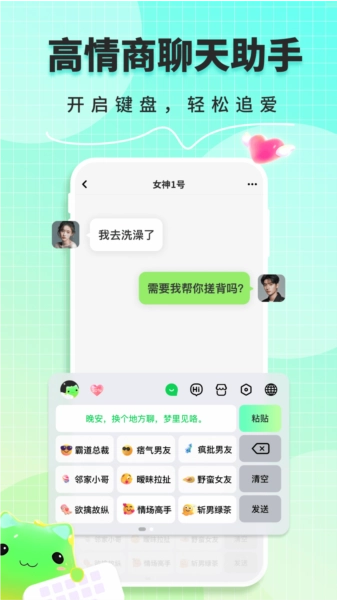 甜瓜输入法是一款用心打造的聊天利器,致力于助力用户提升恋爱聊天能力,从容应对各种社交情境。在这里,用户能够打造专属人设,解锁所有聊天场景,生成更贴合关系的聊天口吻,让每一次对话都饱含温情与智慧。对于那些期望在恋爱聊天中展现更高情商的朋友而言,这款应用是必不可少的。快来使用甜瓜输入法,开启你的聊天之旅吧!甜瓜输入法让你的爱情之路更加顺遂。