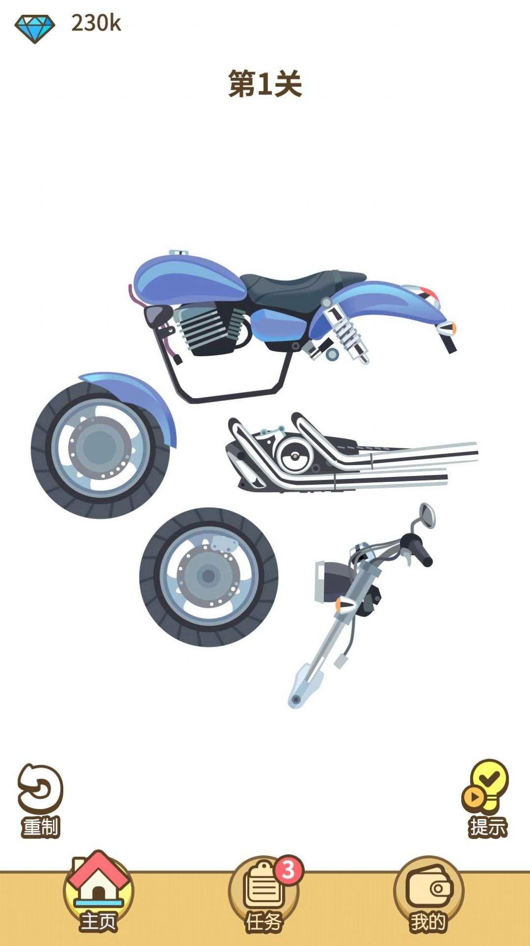 2、采用图片呈现的方式,借助一个个模型展示生活中常见的工具,玩家需要把各个零件组装起来。
