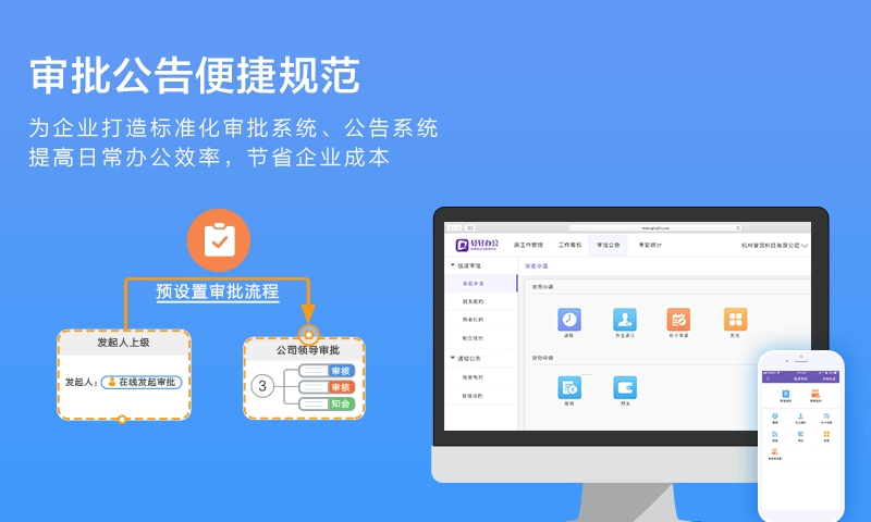 2、快速发起请假、报销、外出、预支等审批。