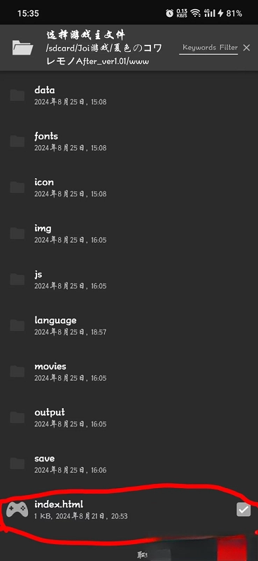 接下来找到翻译文件,把它复制或者移动到游戏文件夹里的WWW文件夹中就可以了。