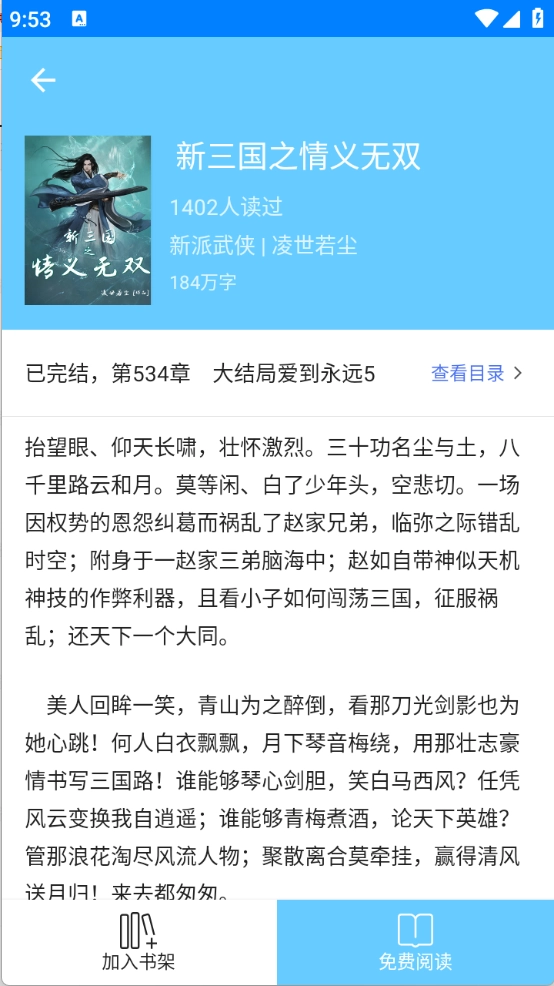 点开喜欢的小说资源进入详情页点击“免费阅读”。