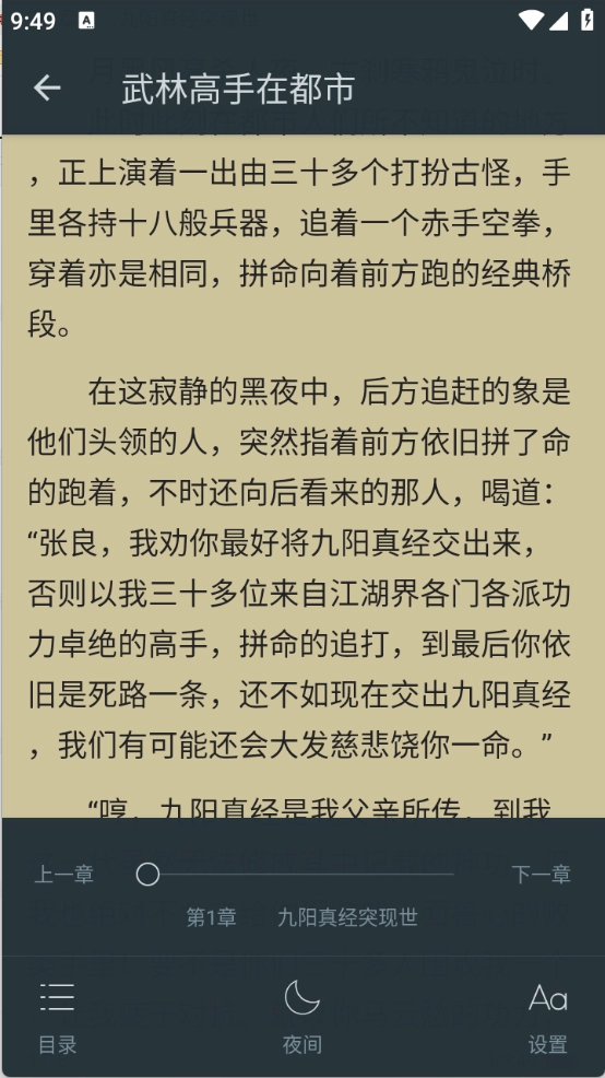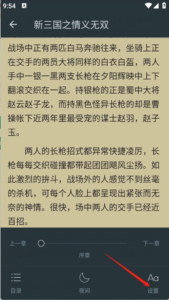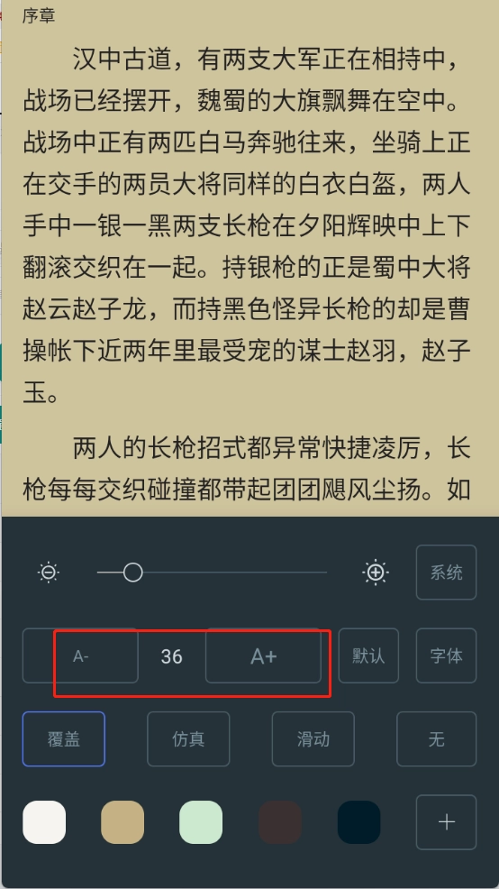 进入阅读页面后,能够对页面的字体大小、背景颜色等进行调整。