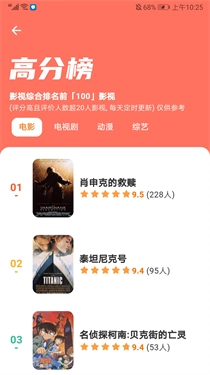 2、用户能够依据自身兴趣挑选对应的类别,此处以高分榜单作为例子,选取相应的影视作品。
