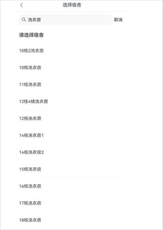 4、可以选择自己所在的房间或商铺,也能进行简单搜索。例如图中搜索“洗衣房”后,点击需要充值的房间即可。