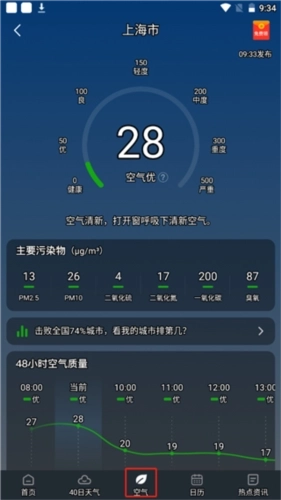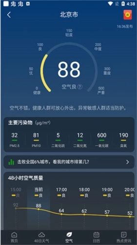 4、即时查看空气质量,不仅仅关心天气,更关心空气
