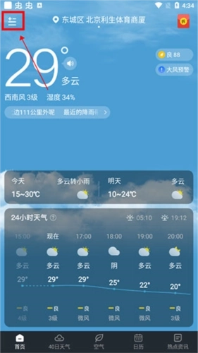 2、当然,我们很多朋友出门时想了解的是未来几天的天气情况,这时候大家可以点击“40天气”选项,就能查看一个大致的天气预报了。
