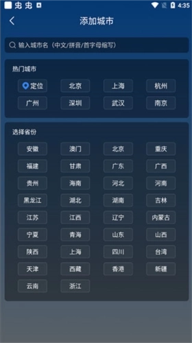 3、这时你可以通过搜索或定位直接选择城市;