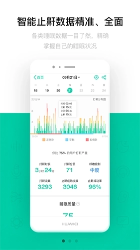 -通过高效低功耗的CPU控制,运用独有的核心算法准确判断出每位使用者不同的鼾声指数