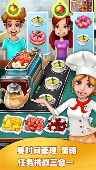 《美食烹饪家》(Crazy Cooking Chef)是一款充满精彩趣味的模拟经营类游戏。它以欧美卡通风格打造画面,玩家在游戏里将化身厨房主厨与餐厅管理者,在风格各异的餐厅中接待每一位顾客,只有迅速制作出各类美食,才能收获好评与收益。