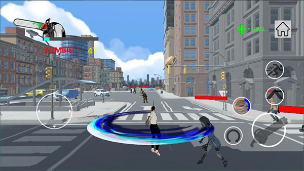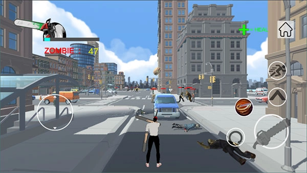 3、战斗打响后,我们能够借助左侧的轮盘操控角色移动,利用右侧的按钮展开攻击,进而击杀僵尸。