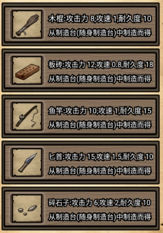 7、包含木棍、板砖、鱼竿、匕首以及碎石子。