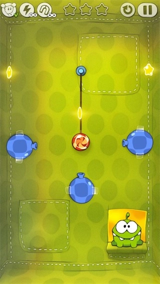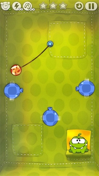 1. 在游戏里,玩家要收集各类颜色的糖果,从而达成关卡目标。玩家能够通过操控OmNom移动,来获取糖果。