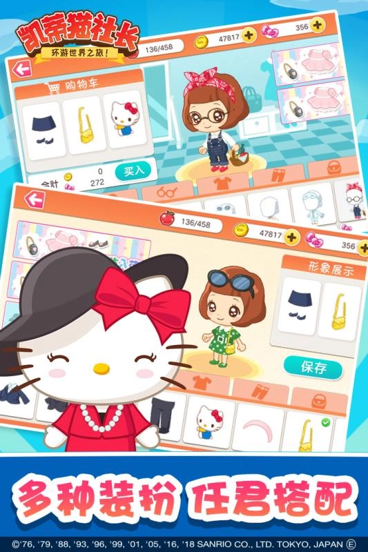 3、海量梦幻装扮任你自由挑选,随心搭配出独具个性的凯蒂猫形象。