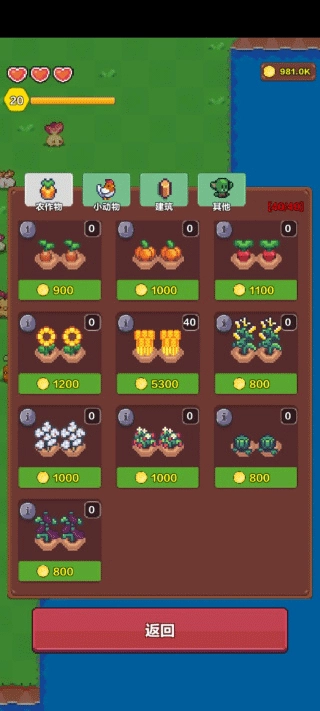 6、田地里的所有植物以及家禽的价格均呈递增态势,前期需合理分配金币。