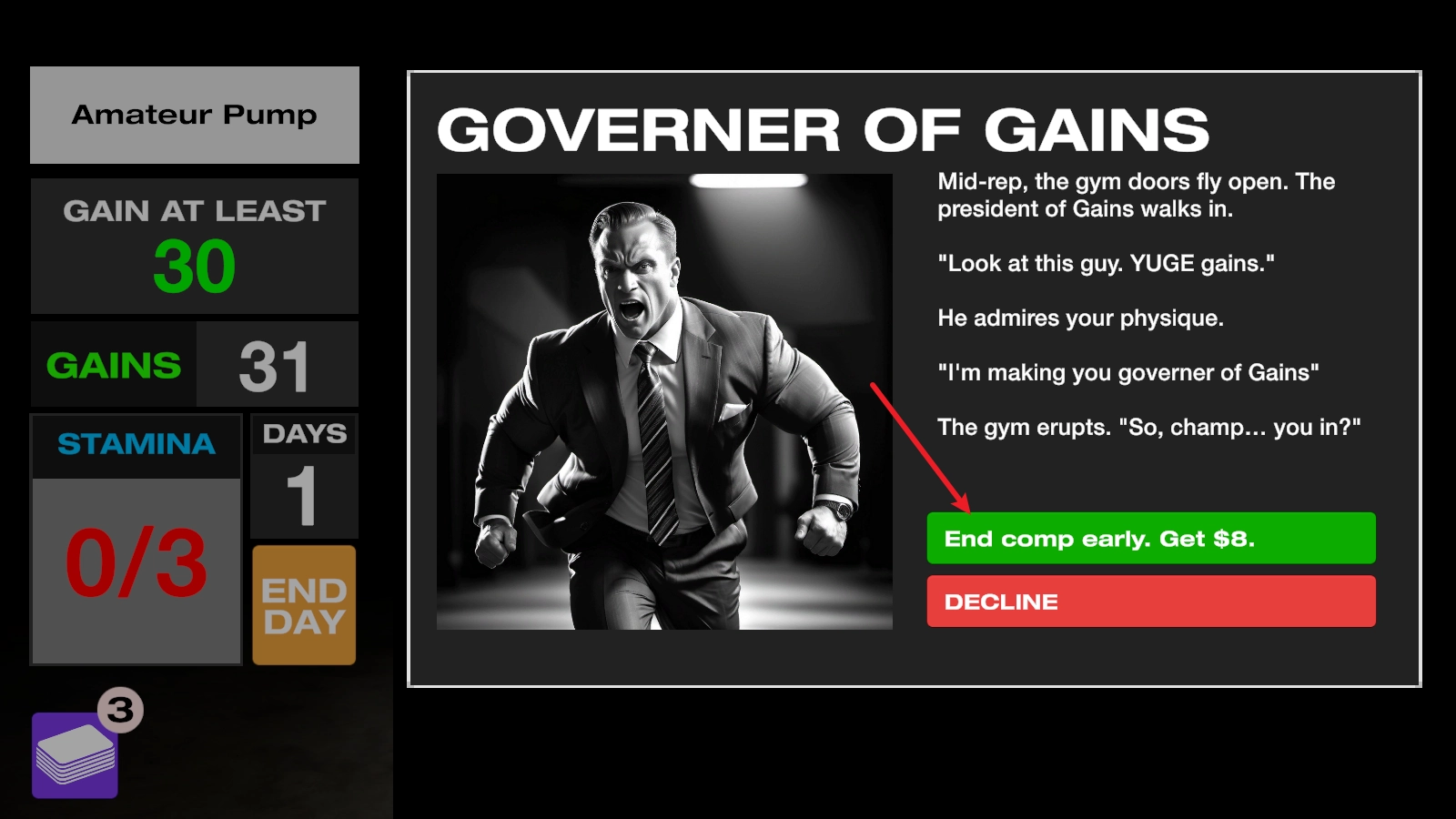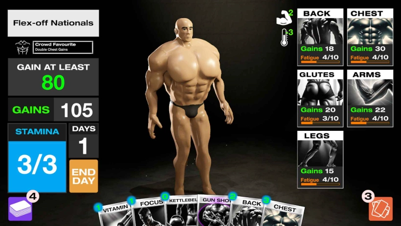 健身模拟器(GET YOKED)是一款健身题材的Roguelike卡牌构筑游戏。玩家在游戏里将化身健身运动员,借助打出各类具备不同健身功效的卡牌开展训练,同时还有多种补剂卡牌能让训练效果更上一层楼。在规定的训练时长内,合理搭配这些卡牌,让自身能力值达到甚至超出标准,就能在健美比赛中脱颖而出、赢得冠军!
