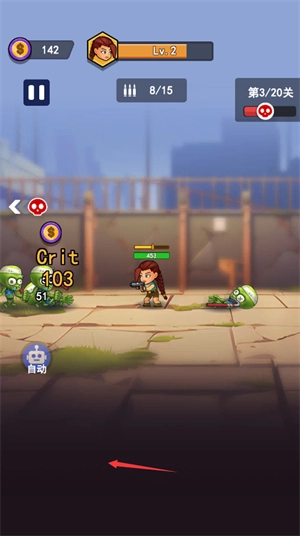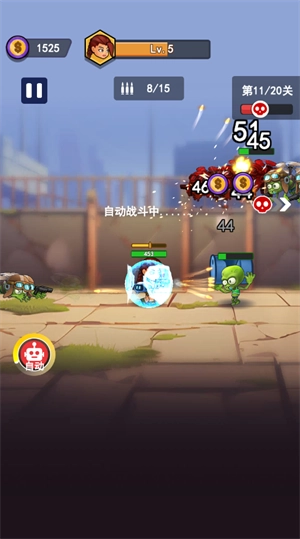 左右滑动控制你的角色进行移动,橘色会自动攻击僵尸