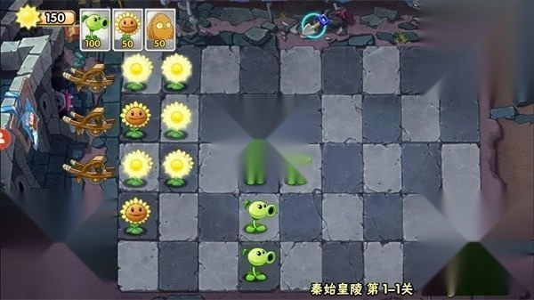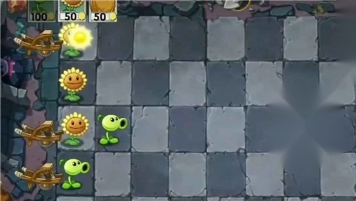 2、能够在最后一排种植向日葵,就能产生大量的阳光,僵尸靠近后,记得在前面种植豌豆射手。