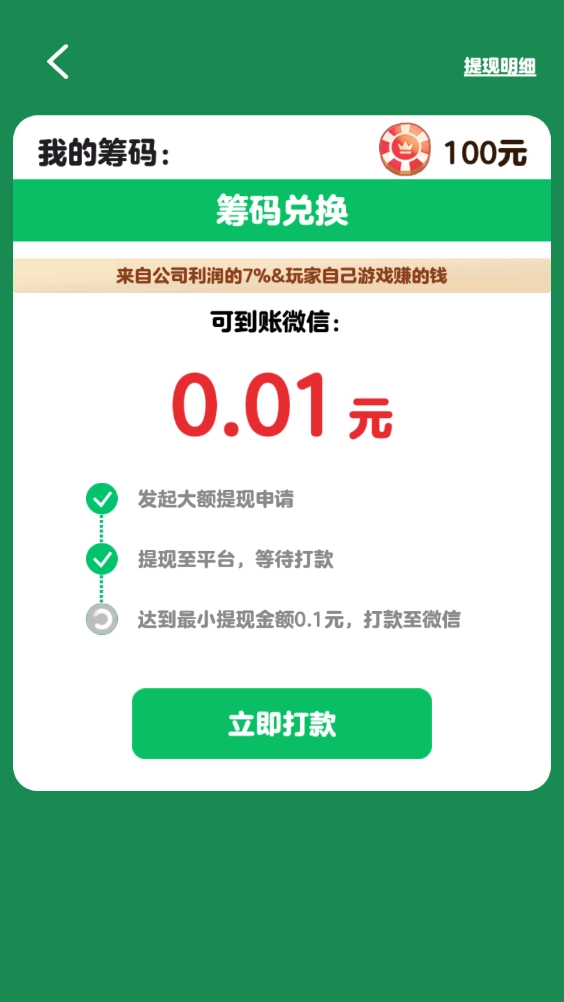 5、获得的筹码奖励能够按照万分之一的比例兑换。